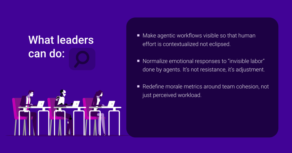 Agentic AI doesn’t wait to be told what to do. It initiates and completes tasks across tools, systems, and workflows without prompts, without check-ins, and often without visibility. That’s part of its value. But it’s also part of the tension. When a teammate isn’t human, but still delivers outcomes before the day starts, it quietly redefines what effort looks like. And when effort becomes invisible, morale becomes fragile.
